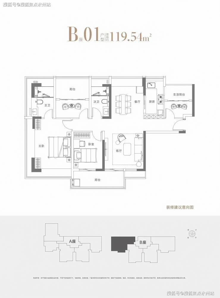 119㎡四房:南北通透,双阳台设计,主卧套房带衣帽间。