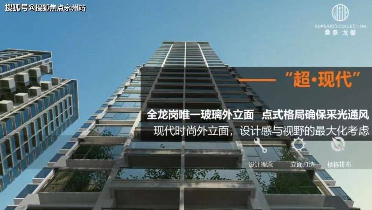 项目外立面采用全玻璃幕墙,立面品质叫板南山豪宅全点式布局,45°角错落而建,确保通风采光。全玻璃幕墙,辅以高档石材,打造公建化住宅立面,设计感与视野最大化考虑。
