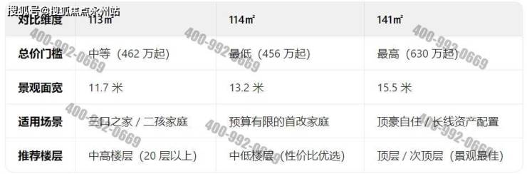 114平四房户型折后约456-516万,面积多了一个平方,总价最低,低楼层户型总价比113平01户型便宜了约45万,虽然不是南北通透,但几十万的价格差还是值得考虑的。