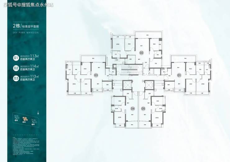 【本次开盘的二号楼产品情况】总层高33层(非超高层),两梯五户,建面约113和114平两种户型