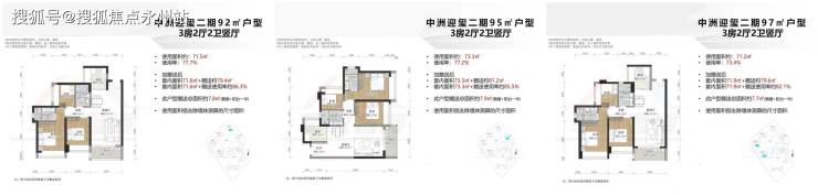 约97平3房2厅2卫,更阔绰、舒适:户型设计和93平差不多,只是朝向上略有不同,尺度更加阔绰,适合预算和生活追求更高一点的精英家庭。