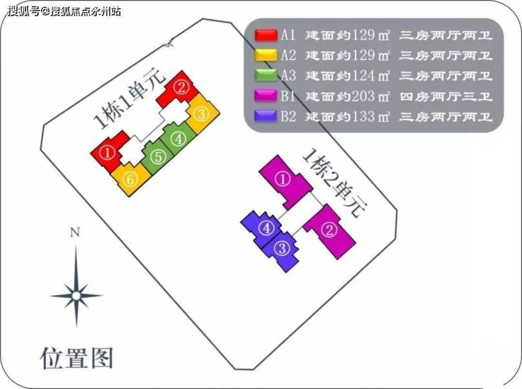 推出建面约124㎡-203㎡三至四房,其中1栋1单元产品为建面约124㎡三房两厅两卫,约129㎡三房两厅两卫;2单元产品为建面约133㎡三房两厅两卫,约203㎡四房两厅三卫。