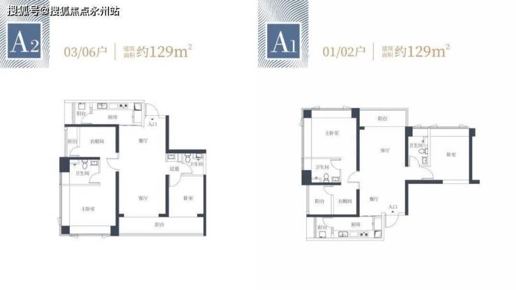 129㎡的3房2厅2卫,设计有2个户型,都是是双龙抱珠格局,其中1个客厅超大观景阳台,分别是西北,东南朝向