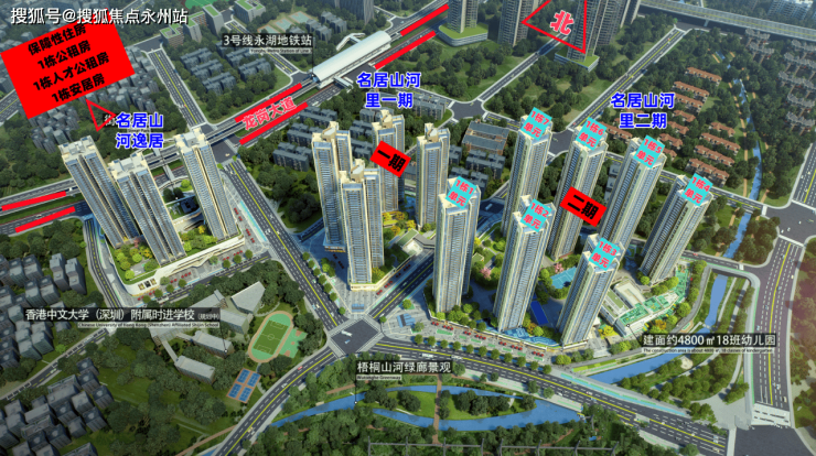 名居山河里,位于龙岗区园山街道3号地铁线永湖站东南侧150米,地处龙岗黄金三角地带,北邻大运新城,东侧是阿波罗未来产业城,西南侧是横岗中心片区。