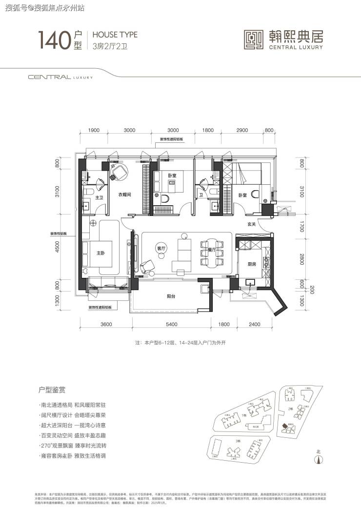 140㎡3+1房2卫:南北通透,横厅32㎡,主卧40㎡,折后总价约1457万起(单价10.4万起)。