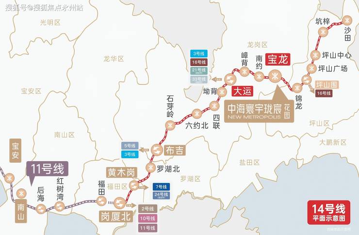 项目临近14号地铁线“宝龙站”,配建有公交首末站,可坐公交车直达地铁站,该线路是从坪山沙田开往福田岗夏北的快速线,设计时速120公里,3站到大运,8站到布吉,9站到罗湖,11站到福田岗厦北,用时41分钟。