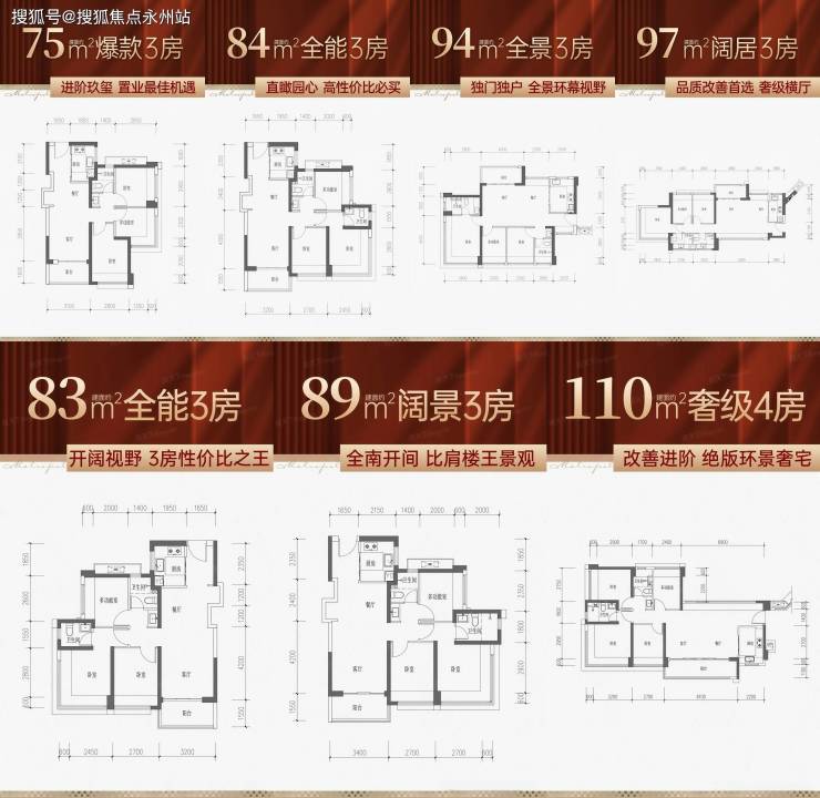 空间利用率高:全系户型得房率88%-95%,通过飘窗、S墙设计等优化空间,例如 77㎡实现3房功能,93㎡双卫布局紧凑合理。