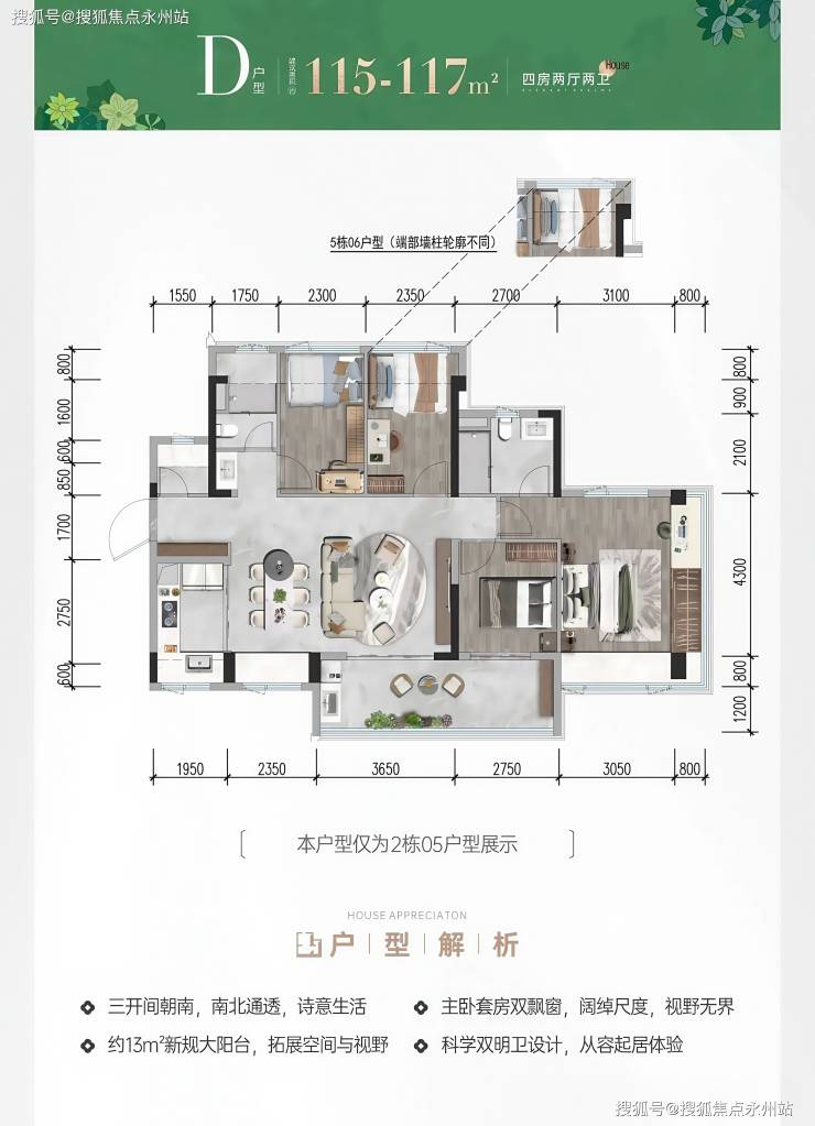 适合人群:改善型家庭,三孩或三代同堂,兼顾舒适性与功能性。