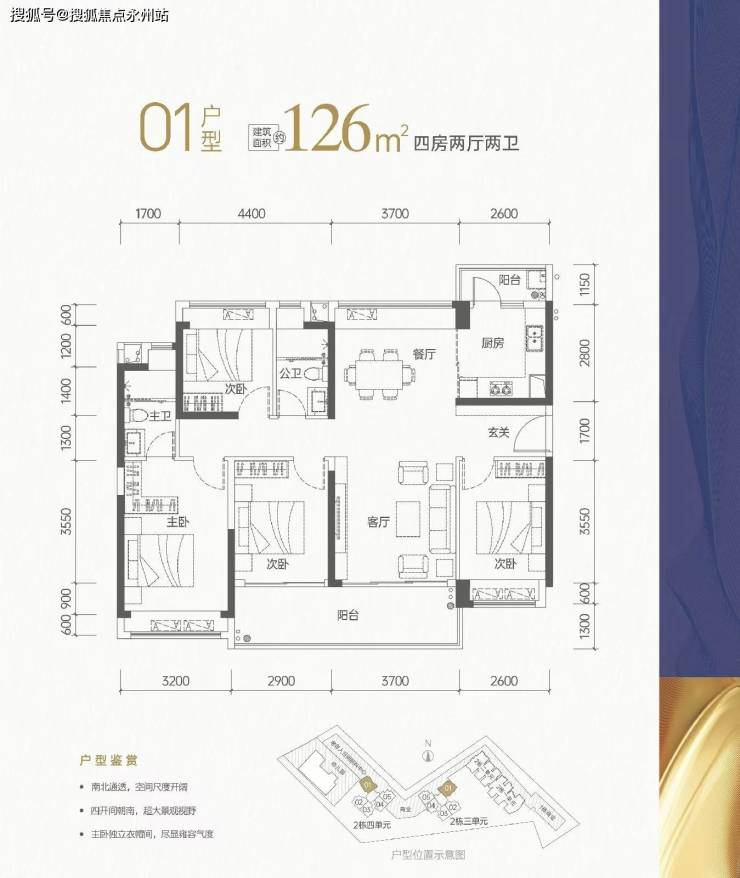 126㎡户型结构上也没有明显槽点,独门独户、动静分区、横厅、餐/客厅独立、通透、双阳台、客厅宽景阳台,各功能间宽敞舒适等都是亮点。同时户型得房率93.11%,表现不差。