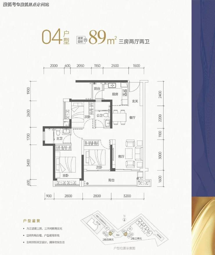 其中89㎡与96㎡户型结构一样,区别在于96㎡的餐厅/客厅和公卫旁边的卧室面积要比89㎡的大一点,其它差别不大。