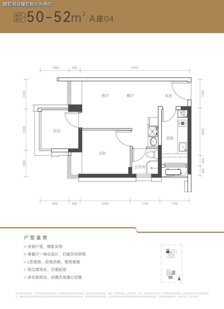 50㎡-52㎡2房2厅1卫:阳台可改成卧室,竖厅格局,客餐厅一体,客厅3米开间,2个卧室分别做到了2.7米/2.5米的宽度,小两房户型,总价低,适合刚需上车客户。户型亮点:全明户型,客厅带飘窗,三分离卫浴,无过道零空间浪费。折后总价309-335万/套,单价6.21-6.73万/㎡。