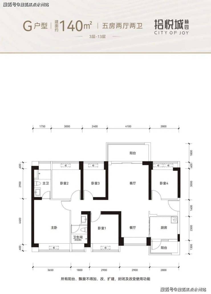 140㎡的5房2厅2卫:设计的竖厅南北通透格局,套内面积107.99㎡,得房率77.14%左右,客厅4.7米开间,目前仅B座05户型有