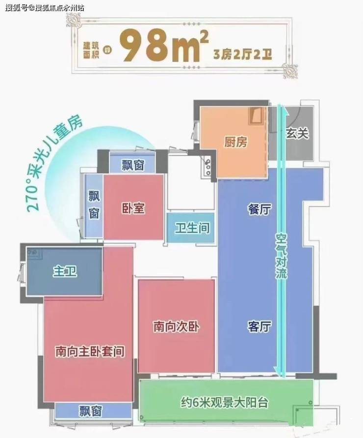 南北通透,通风采光充分,5.8米开间多功能客厅,大尺度起居空间配合大面积阳台,舒适灵活,主卧宽敞明亮,自然通透,功能全面,次卧配置均衡合理,全尺寸飘窗设计,空间利用充分,餐厨空间自成一体,自然通风采光性能优秀,入户自成独立玄关空间恰到好处。