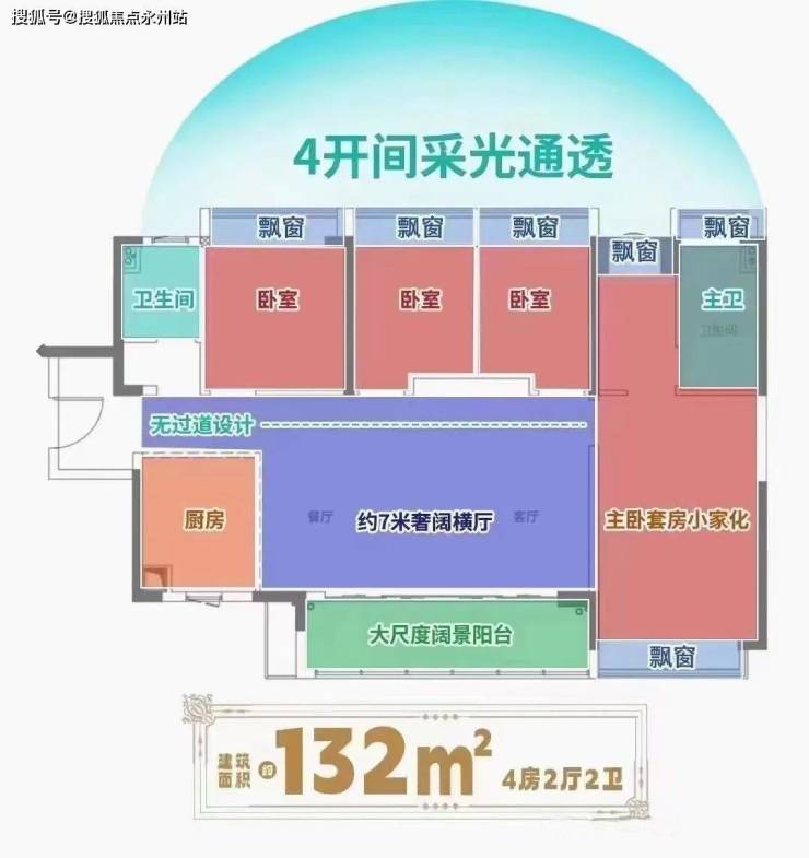 全功能四房,通透结构横厅户型,通风采光充分,餐客厨一体化空间,配有大型通廊式阳台,宽敞明亮,功能全面,主卧自然通透宽敞明亮,配有独立衣帽间,次卧空间配有全尺寸大飘窗,明亮舒适,空间利用充分,入户配有独立玄关,内外过渡互不干扰。