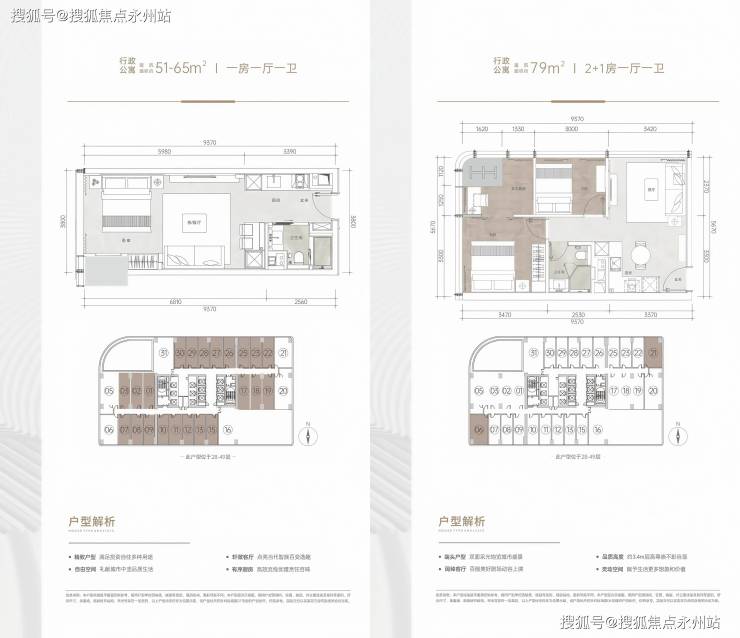 在售户型:51㎡1房1卫,79㎡2+1房1卫103㎡3房1卫,156-165㎡3房2卫