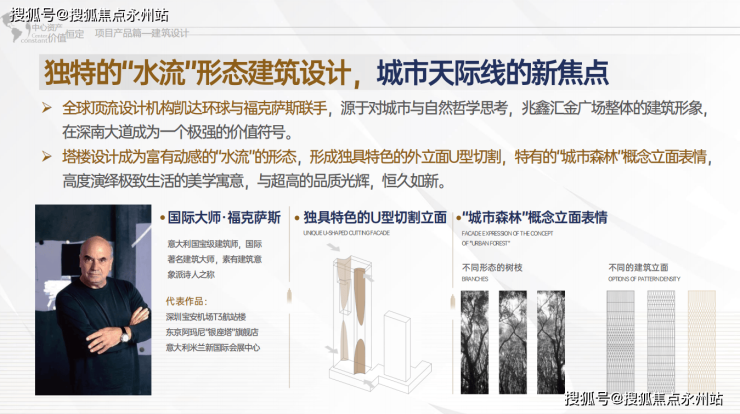 项目作为兆鑫地产的品牌奠基之作,秉持着“云端造极”的理念,携手全球顶级大师,意大利国宝级建筑师福克萨斯、香港著名室内设计师梁志天、台湾室内设计师程绍正韬、台湾室内设计师邱德光,每一细节精益求精,只为呈献无愧于时代的极致作品。