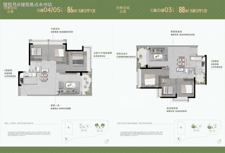 亮点:双阳台设计(88㎡),增强采光与通风。