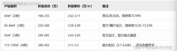 69㎡:总价约220万起(部分房源单价低至2.7万/㎡)83-86㎡:总价220-246万/套