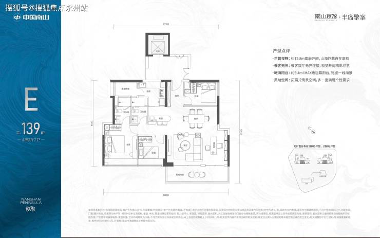 另外,139㎡4房2卫和167㎡5+1房3卫户型则位于32至43层,户数有限,南向视野开阔,可观赏海景,整体居住舒适度高,高区景观无遮挡。
