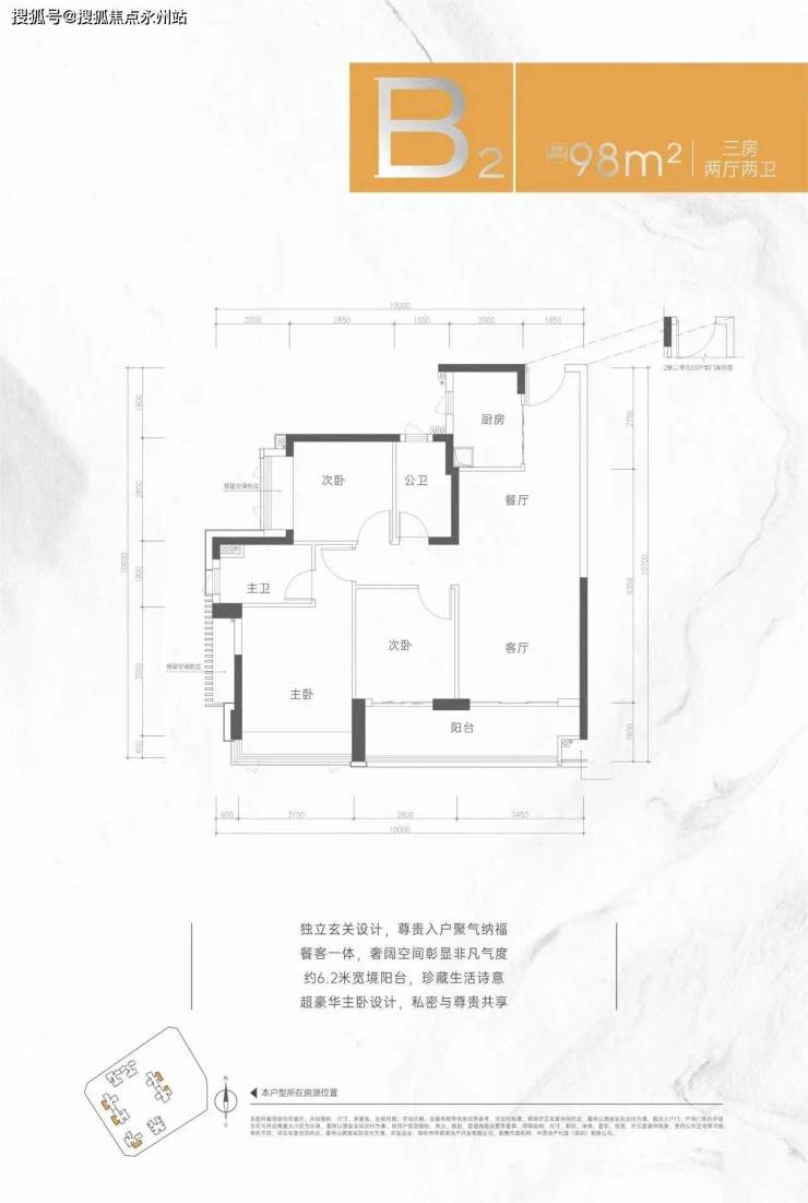 98平三房两卫:户型有西南、东南和东北朝向。竖厅设计,是比较经典的户型设计,动静分区。虽然比95平多了三个平方,但是空间尺寸和功能流线都优秀得多,整体上没啥大毛病。如果厨房门能对着餐厅,那既能保证玄关的独立性,也能缩减传菜的距离,优化行动流线,6.25米长的超大阳台加分不少,主卧和次卧也都做了飘窗。