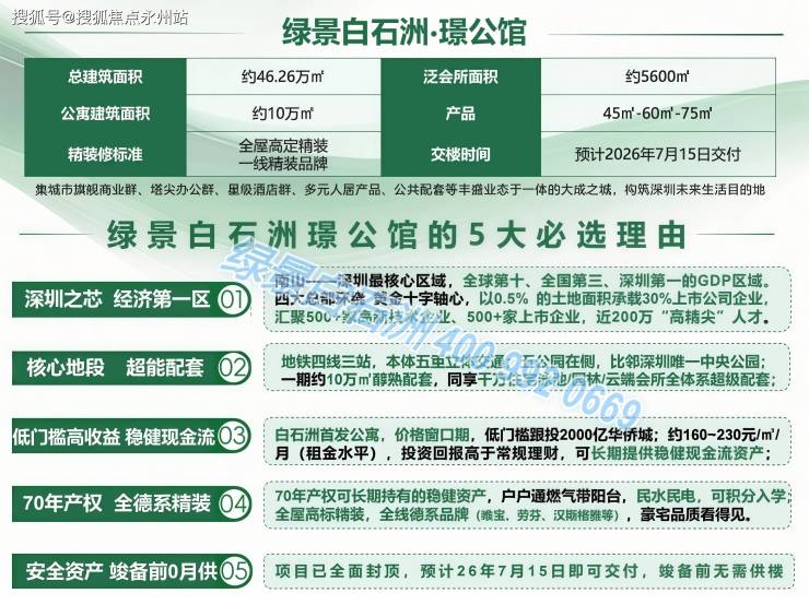 ✅ 绿景白石洲·璟公馆售楼处丨开发商丨营销中心统一热线:400-992-0669(全程认证,无分机号)