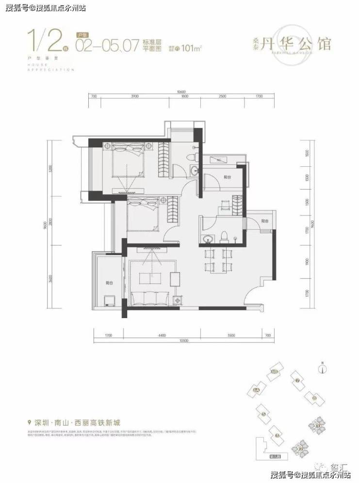 丹华公馆两个主推的户型——建面约58m²的精致小户型,及建面约101㎡的三房臻宅。