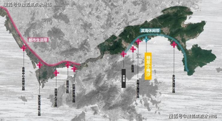 进一步提升为“梅沙黄金海岸旅游区”。盐田结合"七分山、三分城、一面海”地理特征,规划“三带、三心、三组团”,定位为深港国际消费合作区、世界级滨海旅游目的地、国际航运枢纽和离岸贸易中心、现代海洋城市示范区、东部滨海区域的综合性服务中心。