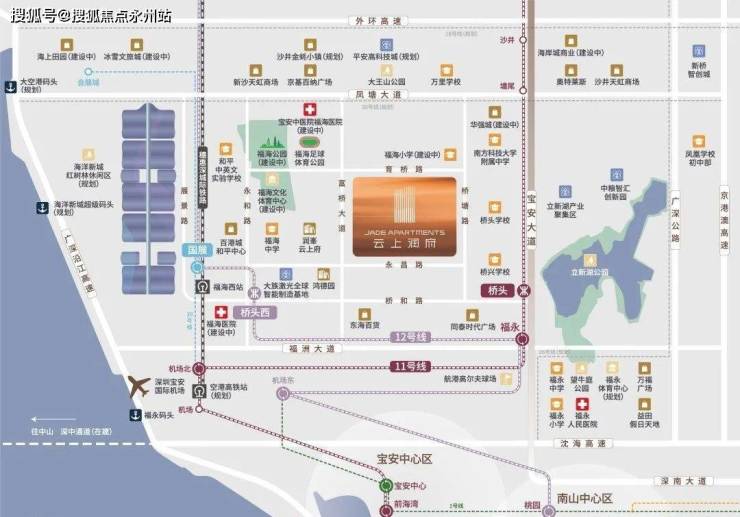 铁:广港深客运专线(规划中)、穗惠深城际铁路(福海西站直线距离约1500米、深圳机场站),延线可直达福田中心区。