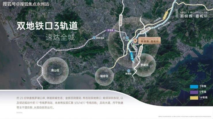 项目直线距离约500米的百鸽笼站是5号线和规划中17号线的换乘站,17号线(规划中)已经在深圳地铁五期规划中公示,预计2025年通车,线路直达罗湖口岸;另一端布吉站是3号线、5号线和14号超级快线的换乘站;同站点深圳东站为高铁站,通达全城。
