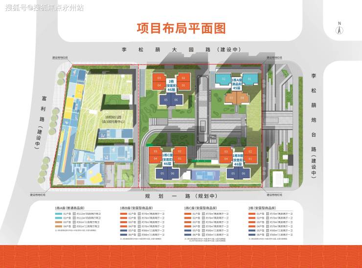 项目总建筑面积约12.31万㎡,计容建面约8.9万㎡,容积率 6.0,绿化率 40.01%,共有4栋住宅,其中商品房1栋(45层,三梯4户,160套),安居房3栋(46层,三梯6户,736套)。车位920个,车位比超过1:1。