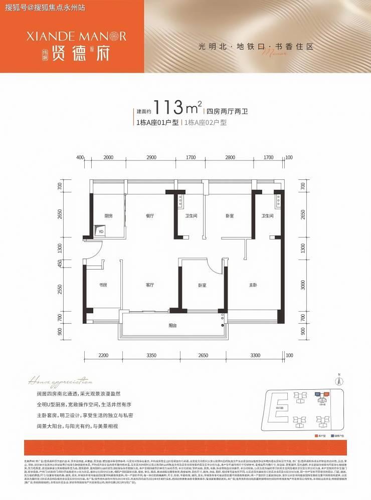 户型详情:主力户型为 91-113㎡精装3-4房,其中 91㎡为正南朝向,113㎡为南北通透。安居房户型包括70㎡两房和90㎡三房。
