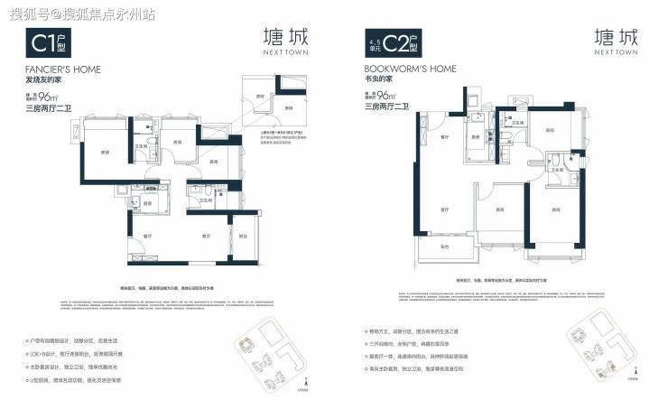 96㎡三房两卫(C1/C2户型)—— 进阶改善主力款