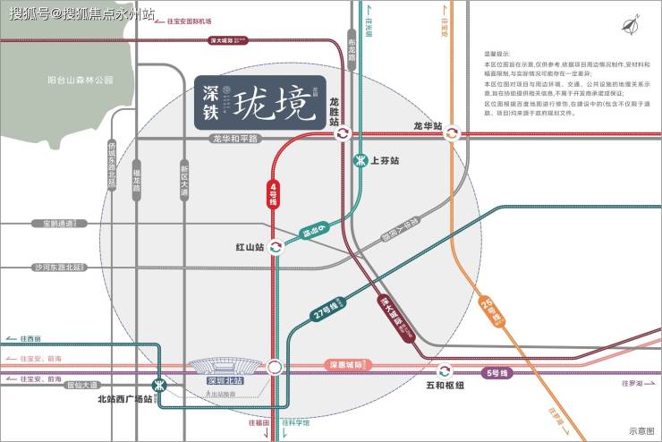 交通枢纽:三轨交汇,3 站直达深圳北站,距 4 号线龙胜站步行约 250 米,3 站可达深圳北站,5 站抵福田中心;临近 6 号线上芬站(步行约 900 米)及在建深大城际龙胜站(步行约 400 米),未来3站直达机场。