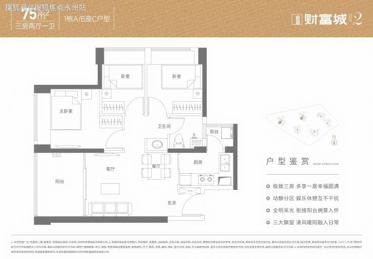 刚需首选:75㎡三房适合预算有限的年轻家庭,得房率高且功能齐全,折后总价约227万起。
