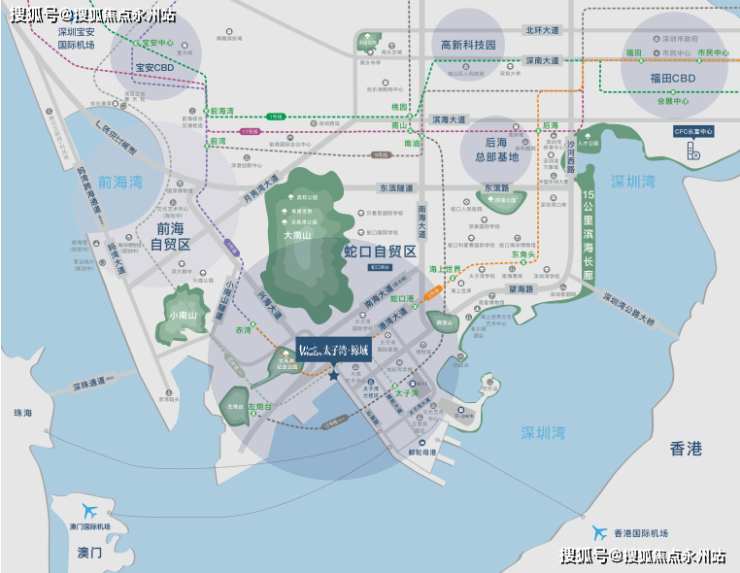 项目位于前海蛇口,集“粤港澳大湾区、社会主义示范区、前海蛇口自贸区、一带一路”四大国家级发展战略于一身,处热点板块深圳湾和前海湾重叠处,吸纳双湾优越资源。同时,随着2021年深圳十四五重大规划中蛇口国际海洋城的启动,太子湾前瞻布局战略性新兴邮轮产业,占据先天优势成为城市新一轮发展的起点,将推动区域不断向前发展