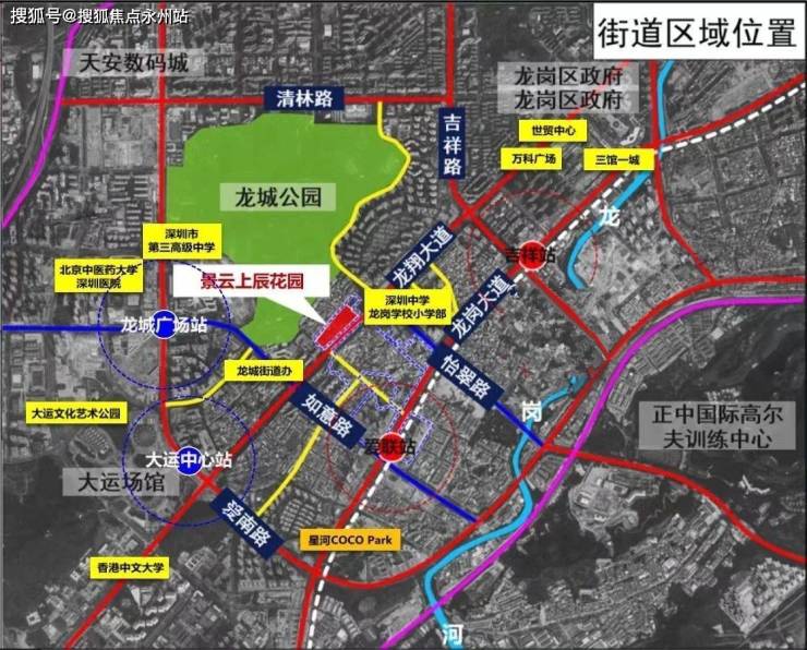 位于龙岗区龙城街道龙翔大道与怡翠路交汇处西侧,地处龙岗中心城片区,周边居住氛围浓厚,项目北侧是龙城公园,西侧毗邻龙岗大运新城,东侧是龙岗商业中心,万科广场、世贸百货、万科里等均坐落于此,龙岗声名远播的豪宅小区“鸿荣源公园大地”就在项目旁边。