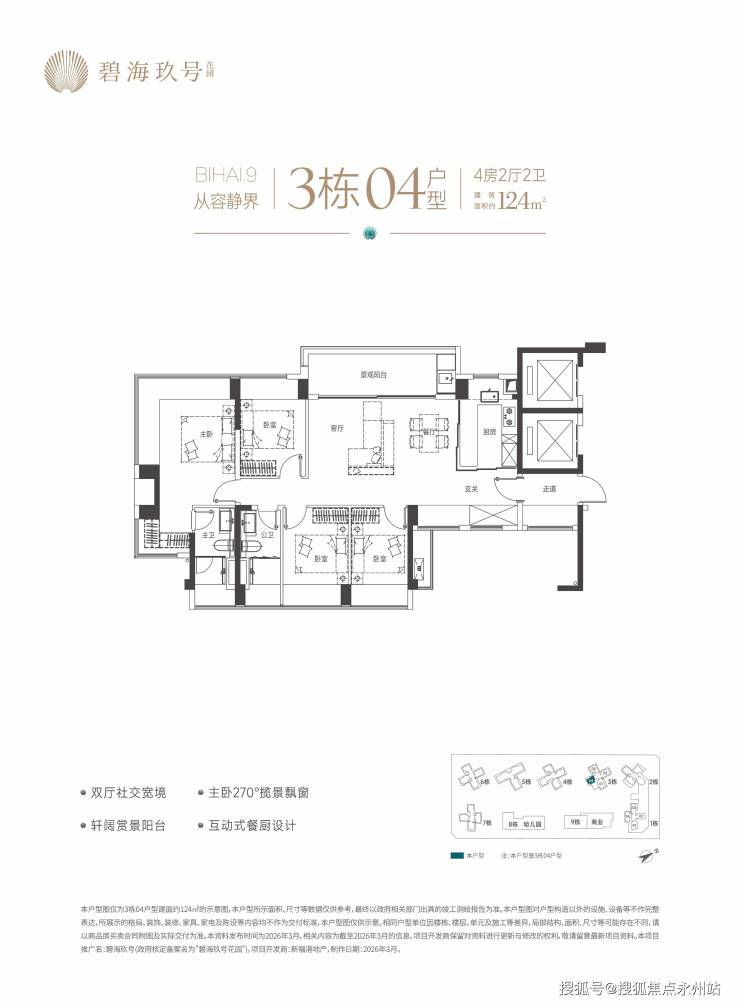 规划指标:容积率仅2.2,为碧海片区最低,规划7栋23-26层小高层,总户数634户,楼间距50-80米,绿化率40.01%,打造低密舒适的居住环境;车位比1:1.3,普通楼栋采用2梯4户配置,楼王楼栋为3梯3户(专梯入户),保障出行便捷性。