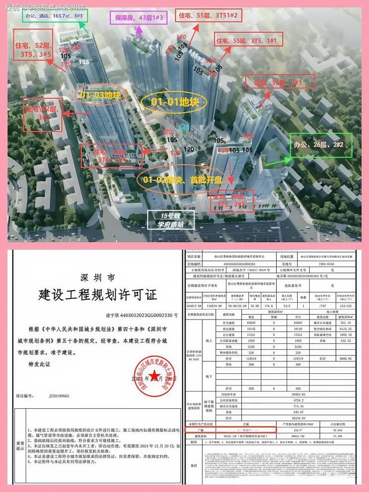 01地块:总建面约17万㎡,容积率9.0。规划住宅建面约8.9万㎡,商业建面约3.2万㎡,规划为3栋超高层塔楼住宅+幼儿园,1栋一、二单元193米53层,1栋三单元154米43层。