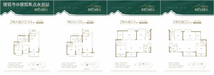 2栋A座约121.58㎡三房两卫(01户型)横厅格局,三面采光,通风效果极好。南向望山,西向望河,北向望湖,三阳台设计。