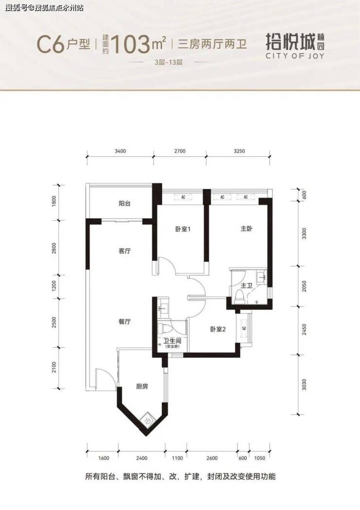 103㎡的3房2厅2卫,设计的竖厅格局,客厅3.4米开间,目前仅B座07户型有,东北朝向