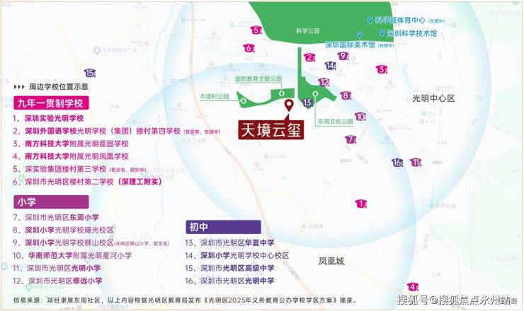 从大的规划来看,这里聚集了200万㎡的城市公园群。项目不仅是“在公园旁”,更像是“在公园里”。北侧是东周文化公园和国防教育主题公园,东北方向是光明最核心的科学公园、科技馆、深圳国际美术馆等地标 。在光明买房,买的就是“公园+规划”,而振业天境云玺无疑占据了这片蓝绿交织的核心C位。