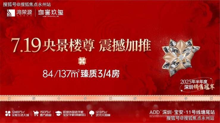 宝安沙井「鸿荣源·珈誉玖玺」全新楼王单位10栋1单元新品7月14日已取证入市,7月19日开盘直接认购!面积有84㎡的3房2卫,137㎡的4房2卫户型。