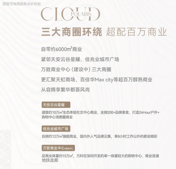 万致商业中心总商业体量达15万平米,万科在深圳开发的单一体量最大的购物中心,5号线地铁上盖,商业连通地铁走廊,以"自然有生活“为品牌理念,打造一座具有”自然探索乐趣“的都市社交中心。