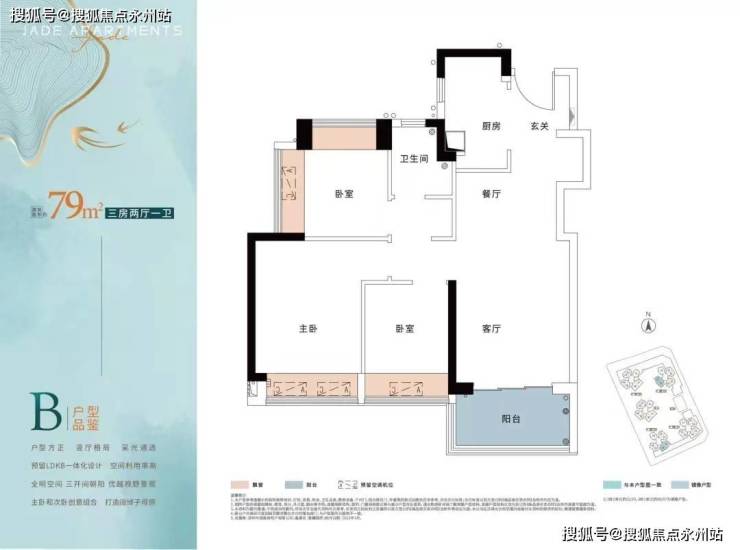建面约79㎡三房:全明空间,坪山罕有的三开间朝南,观景视野更加开拓,大飘窗设计,大面宽的采光角度,最大限度提升居家的舒适度。