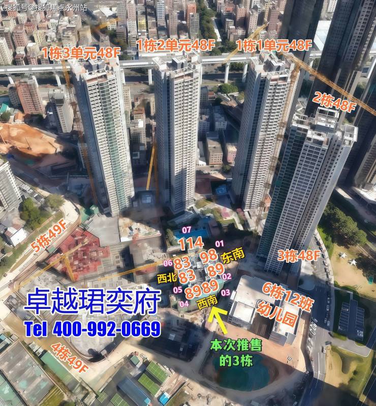 本次加推的3栋,83平朝西北向,跟4栋楼间距较远;89平朝东南向或西南向,看规划学校或幼儿园的视野;98平朝东南向;114平东南对西北,前后看花园景观。