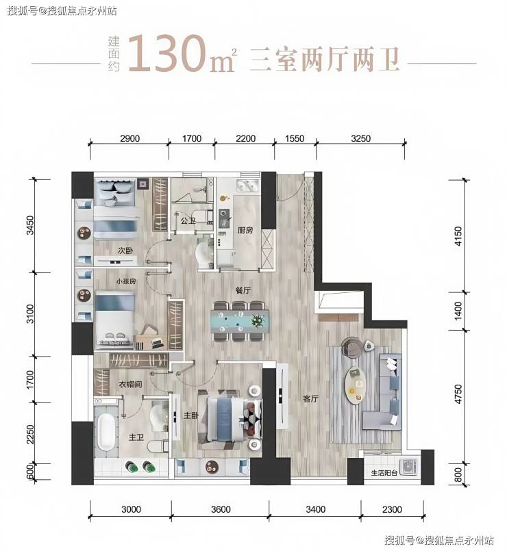 空间布局:三室两厅两卫设计,横厅开间达 4.5 米,连接 7 米景观阳台,公共区域面积超 60㎡,可容纳 8 人家庭聚餐。主卧套间含独立卫浴与步入式衣帽间,次卧均带景观飘窗。