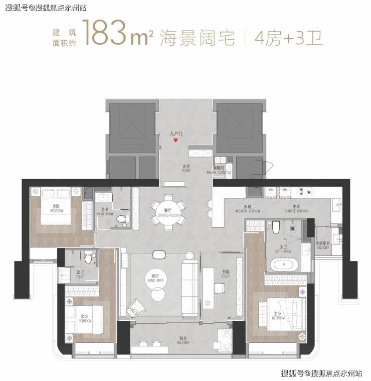 改善级(183-270㎡):强调空间仪式感,如专梯入户、双套房设计,匹配高净值人群对私密与尺度的双重需求。