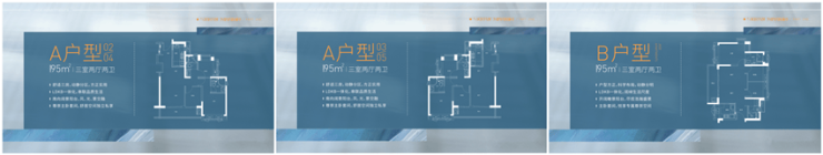 约95㎡三房两卫(1栋01/06户型)横厅南北通透格局,餐客一体设计,01户型阳台东南朝向,06户型阳台西南朝向。