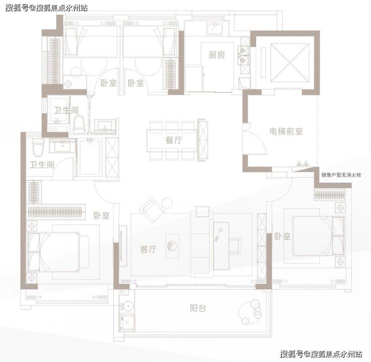 面积:79-85㎡3房1卫,91-95㎡3房 2卫,125㎡4房2卫