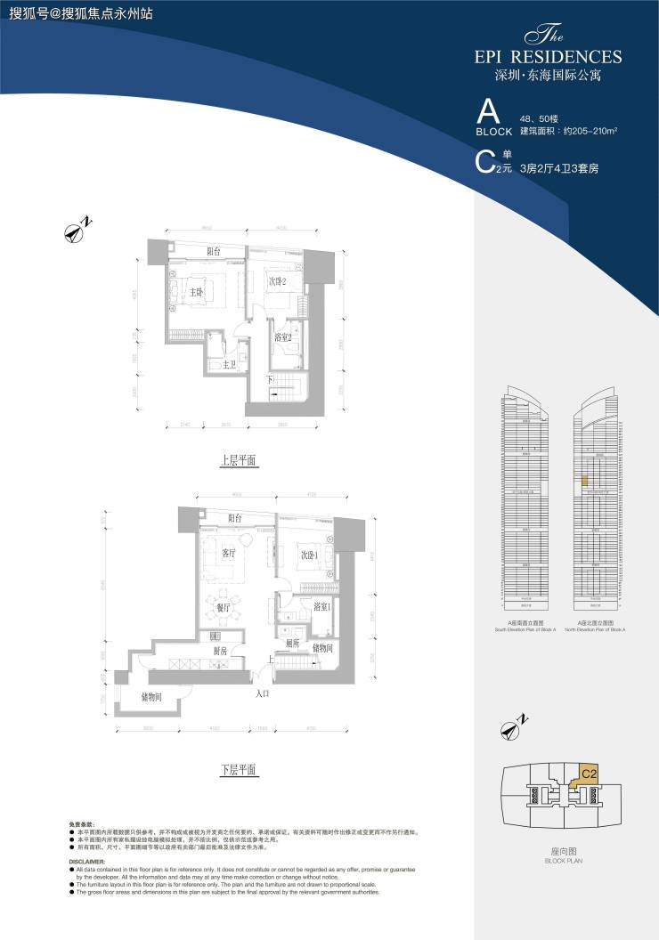 A座48层C2单位,建面约210㎡,3房2厅4卫3套房